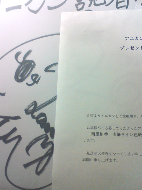 今なら同HPのバックナンバーでも確認できる色紙が入ってました(≧∇≦)